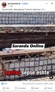 “Aty është pisllëk. Mbeturina kudo. Metale dhe plastikë kudo. Po mendoja të kthehesha sërish në Shqipëri për pamjen e bukur, për të notuar, por tani po hezitoj se është shumë pisllëk dhe nuk më pëlqen kjo ndotje”, shprehet turistja në videon e publikuar nga Saranda Online dhe që më pas është ripublikuar nga Sali Berisha.
