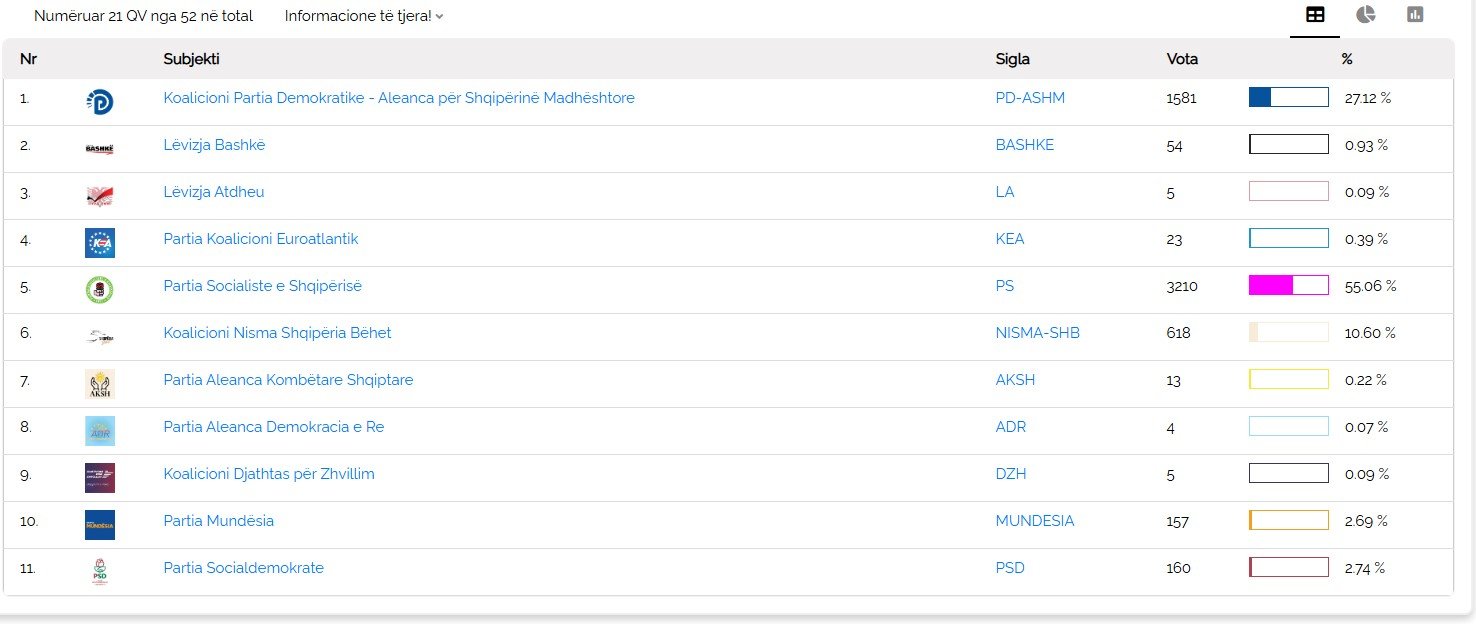 Rezultatet e deritanishme në qarkun e Vlorës janë si më poshtë: